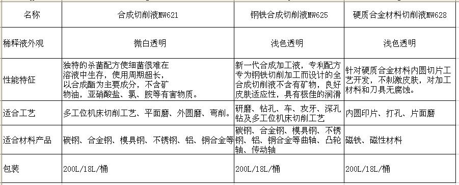 全合成切削液MW621/鋼鐵合成切削液MW625/硬質(zhì)合金材料切削液MW628